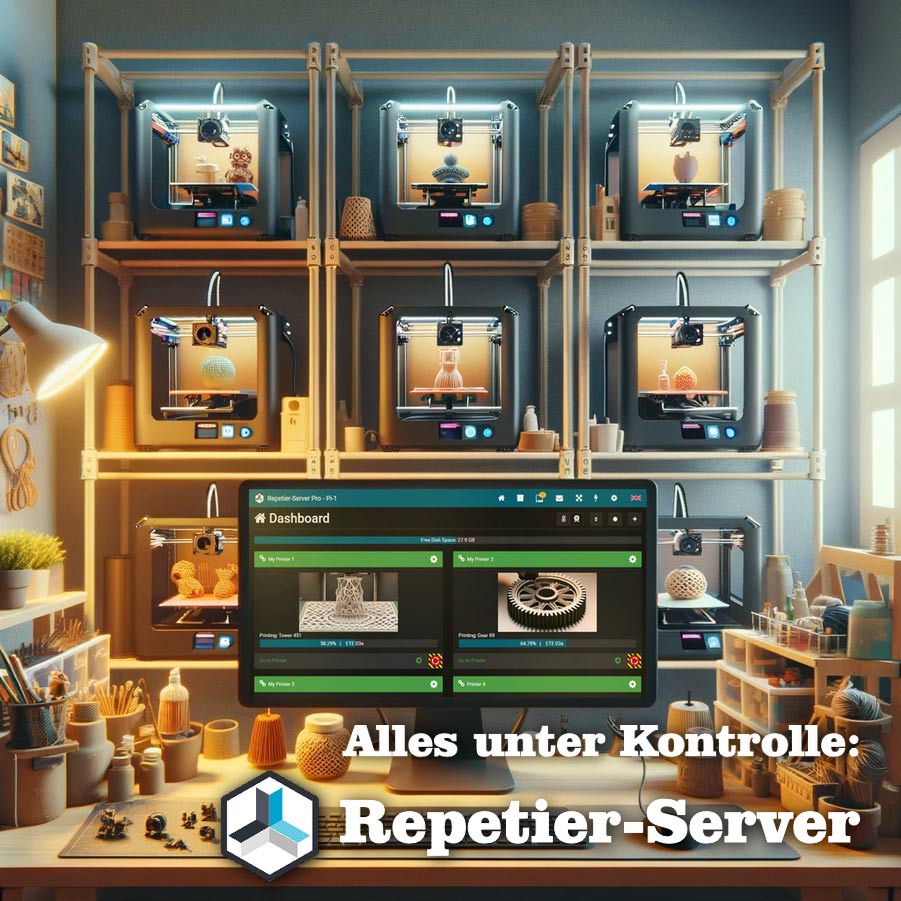 Erlebe mit Repetier-Server die Zukunft des 3D-Drucks. Erschließe bisher unentdeckte Möglichkeiten und entfessle das volle Potenzial all deiner Drucker.